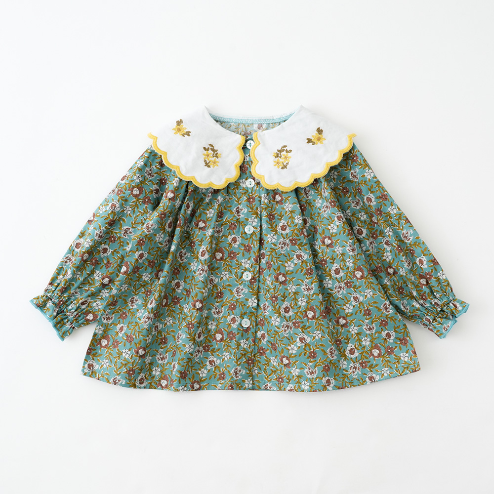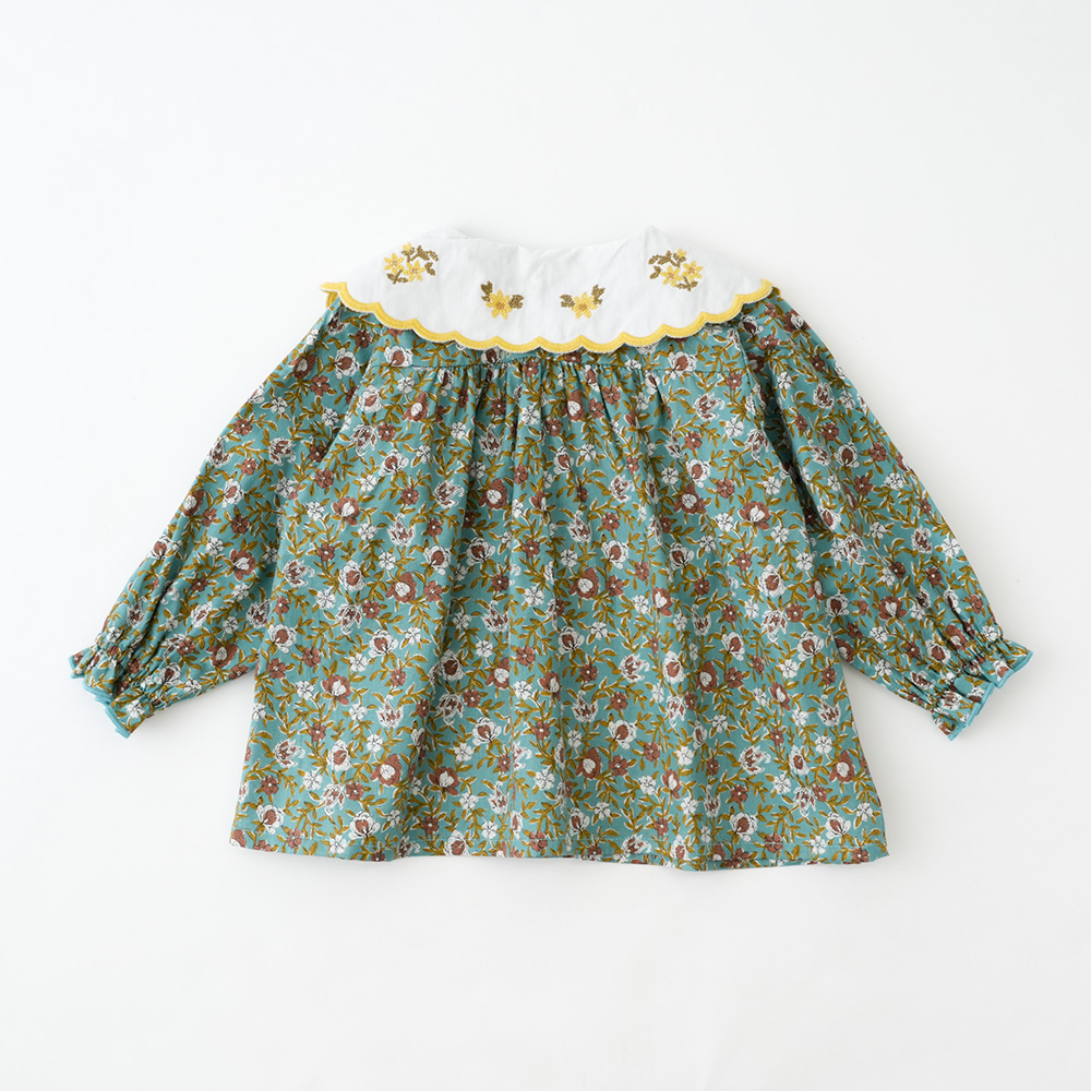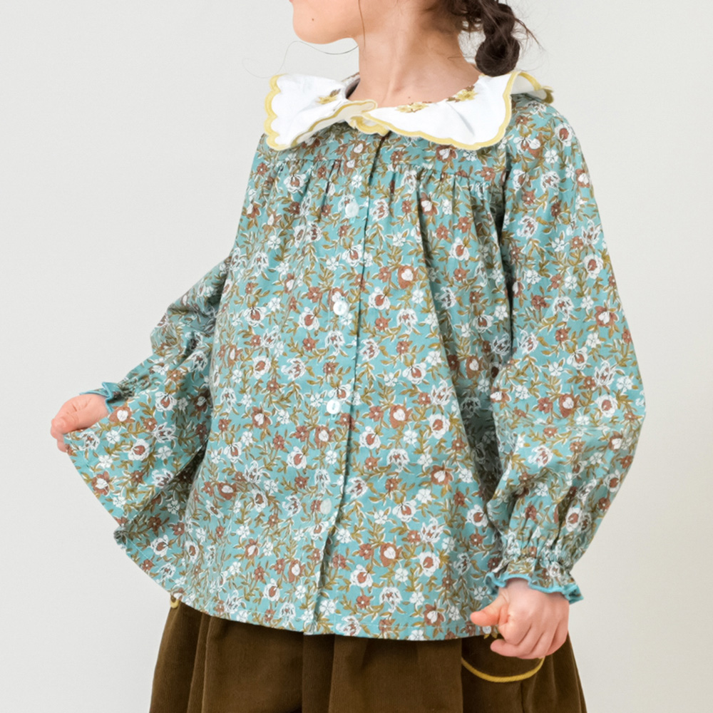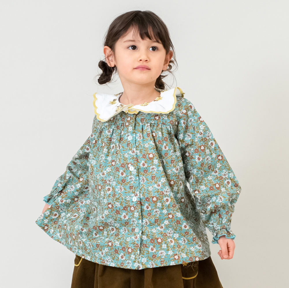 - スカラップ襟にフラワー刺繍、フラワープリントとロマンティックな要素がたっぷり詰め込まれたブラウス。