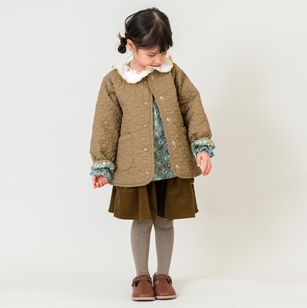 ふんわりとしたシルエットが可愛さを引き立てます。前開きボタン付きです。