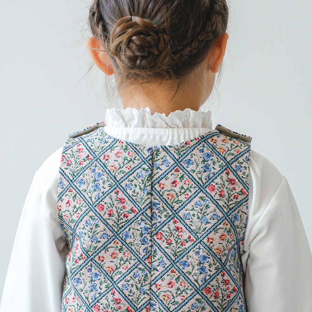 - ヴィンテージな雰囲気を感じさせるフラワーゴブラン織りが魅力のジャンパースカート。