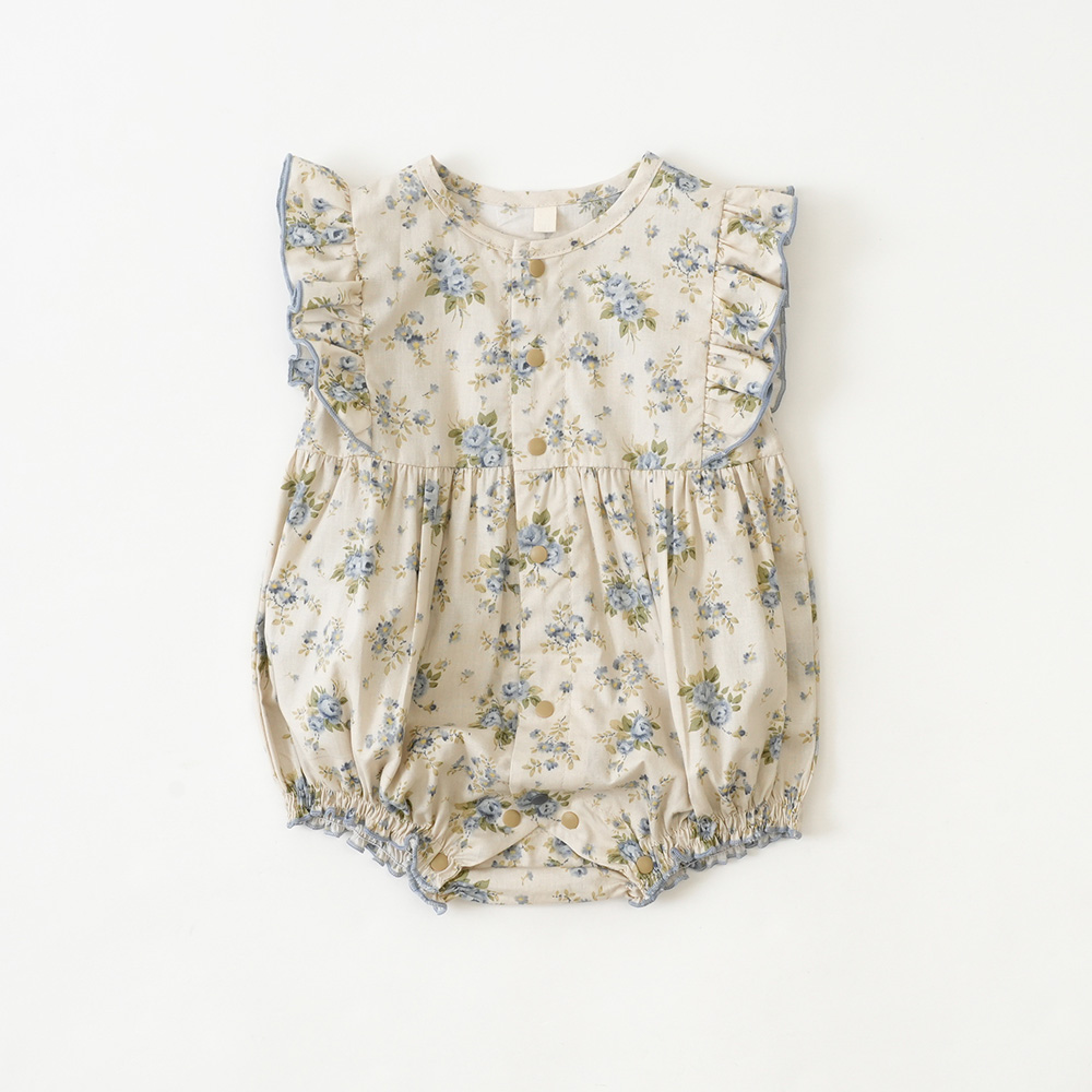 肩のフリルが赤ちゃんの可愛さを引き立ててくれるロンパース。