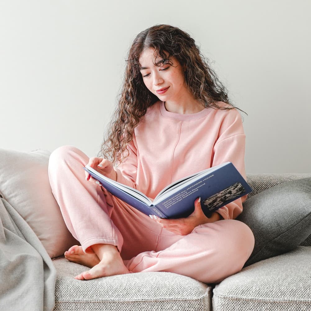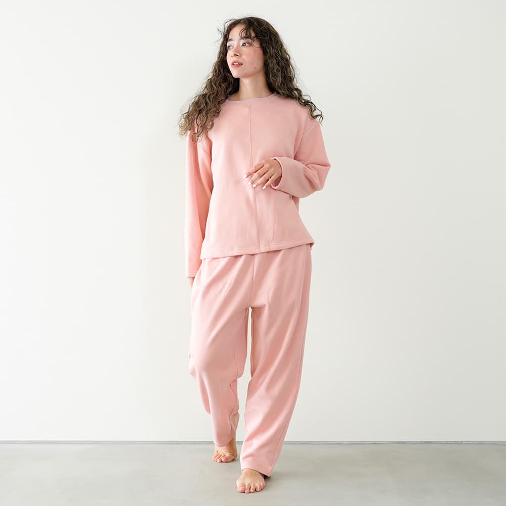 - 後ろ裾にスリットの入ったデザインです。裏起毛シャギー素材で、やさしい着心地がポイント。