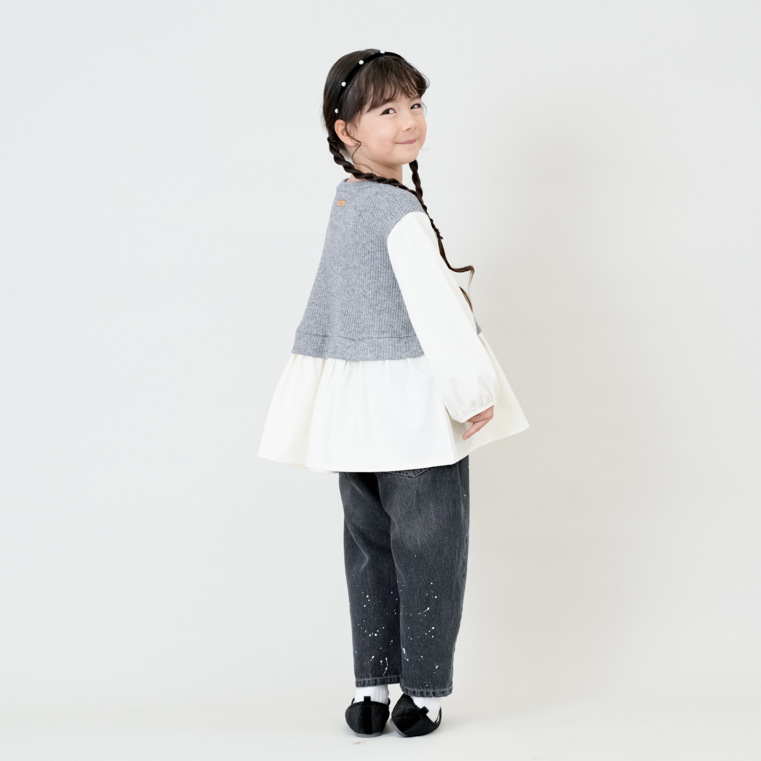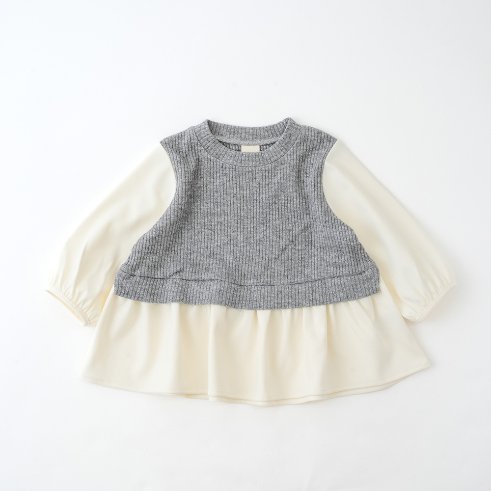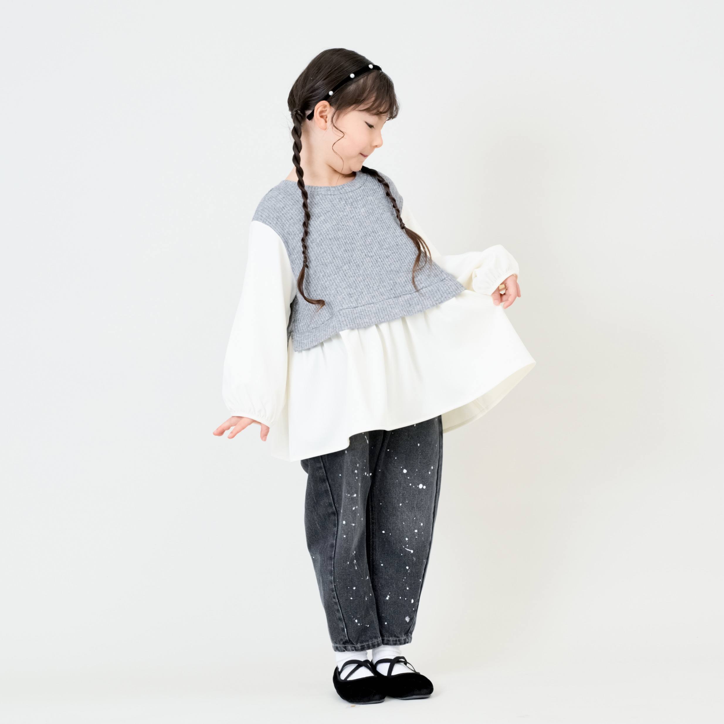 重ね着風デザインで簡単におしゃれが決まり、大人っぽい配色でリンクコーデにもぴったり♪