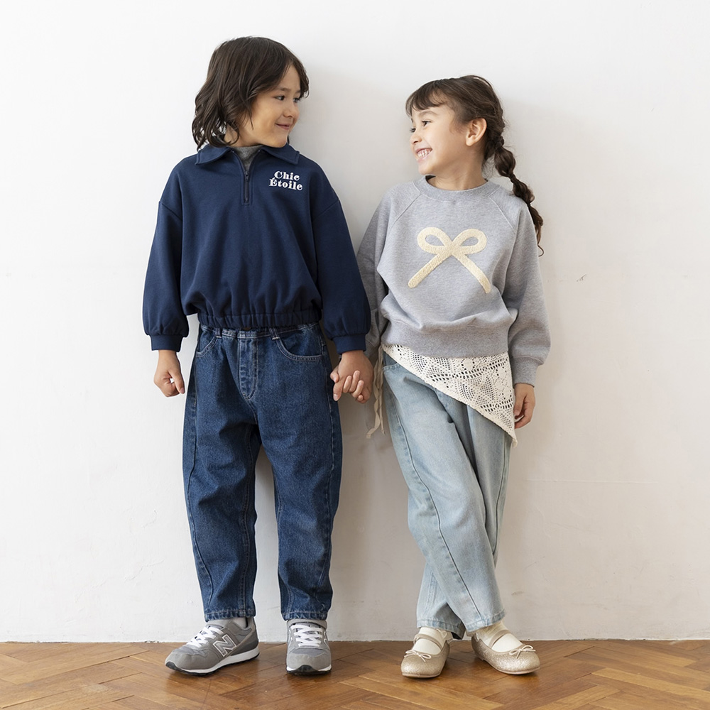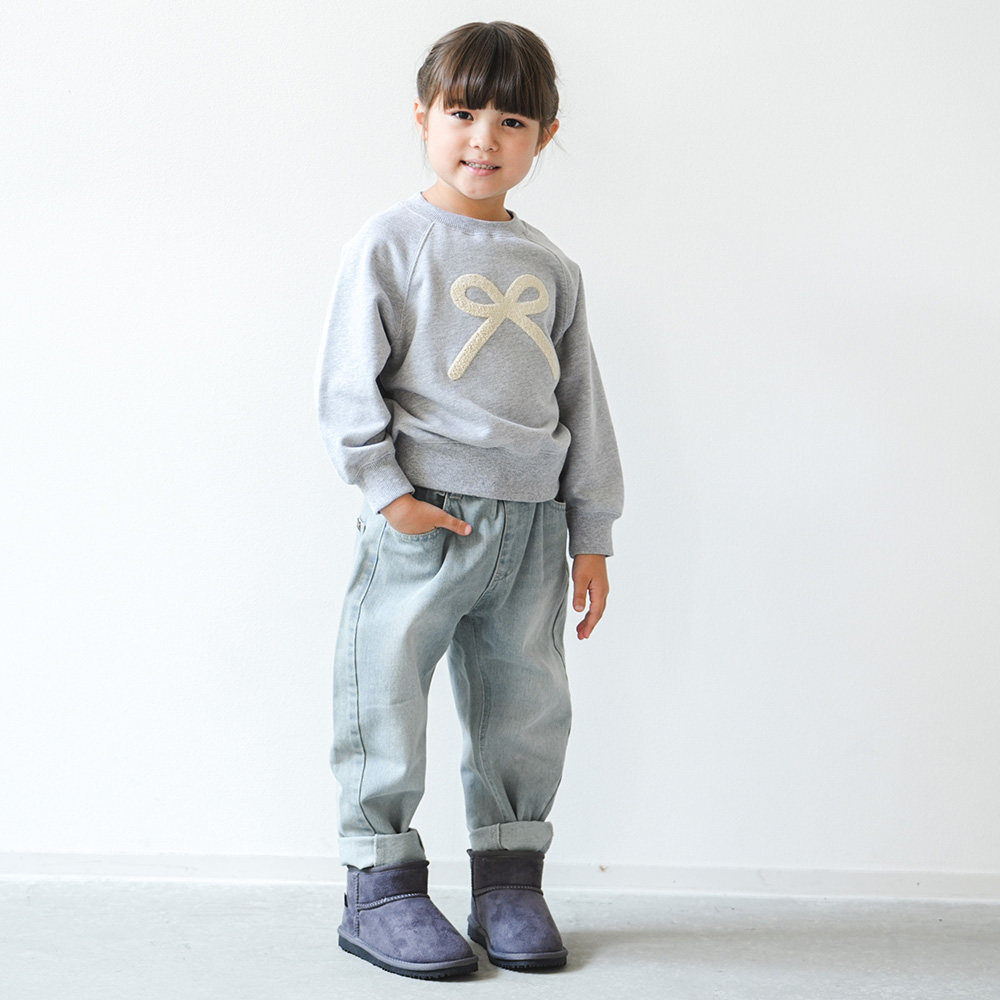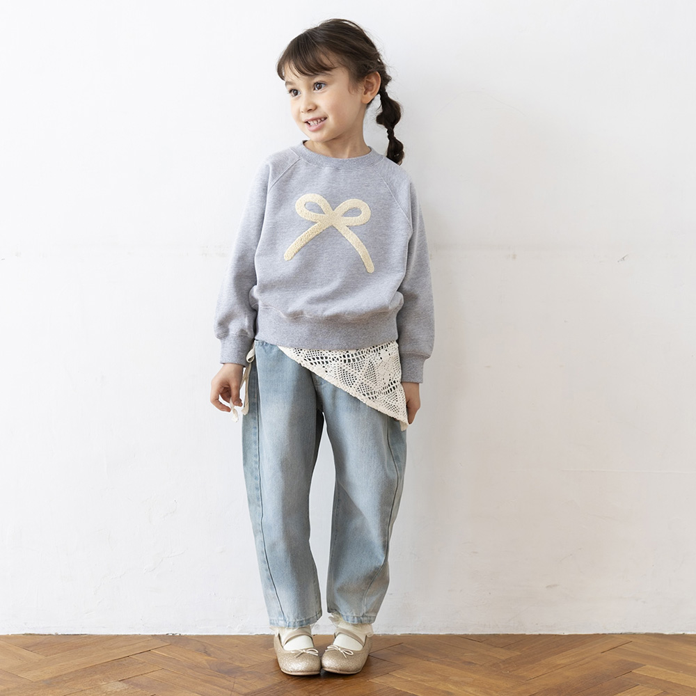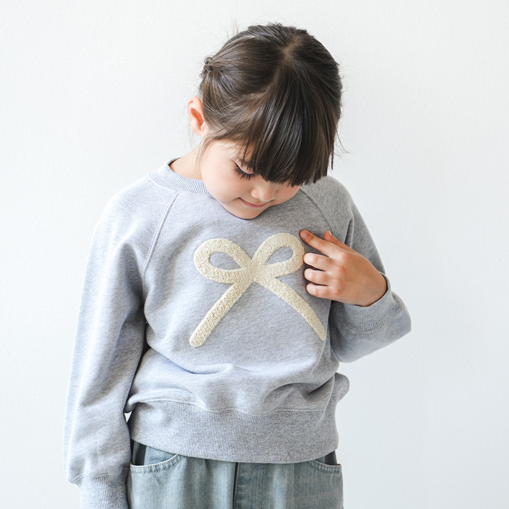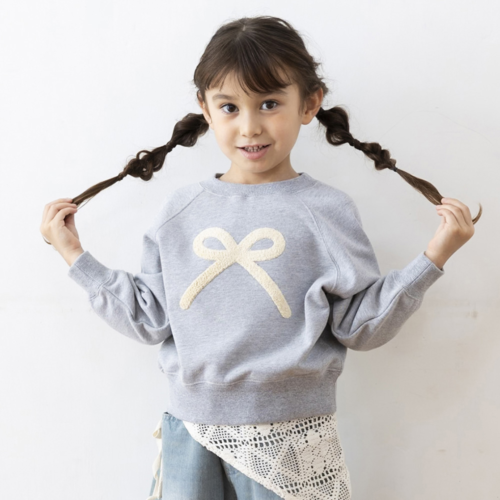 - 立体感のあるリボンモチーフのサガラ刺繍がポイントのトレーナー。