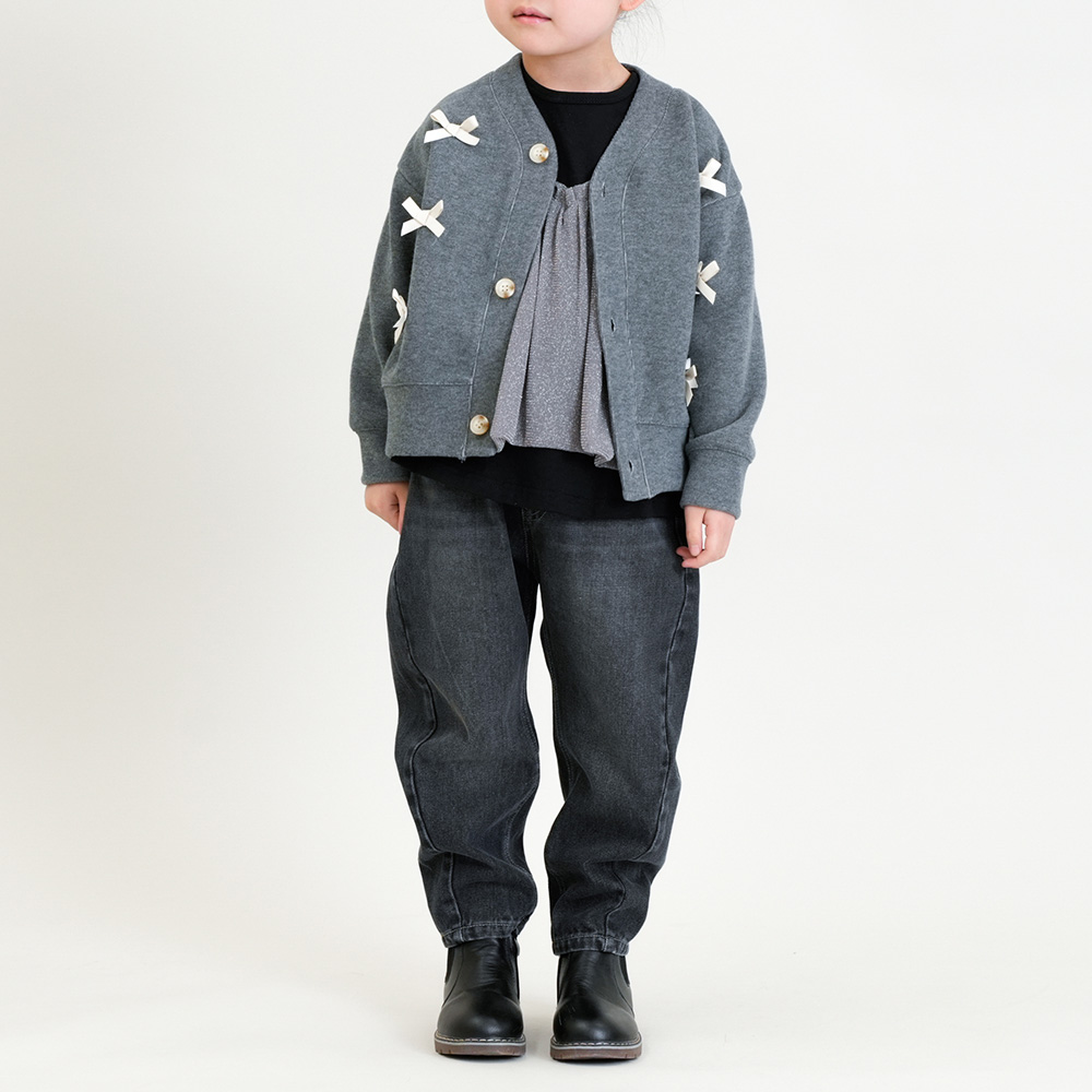 - リボンをあしらったカーディガンが登場。合わせやすい丈感で、どんなコーデにもフィットします。