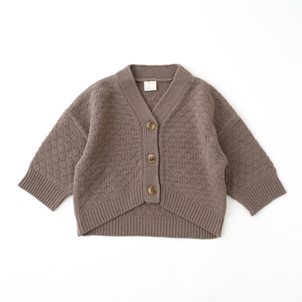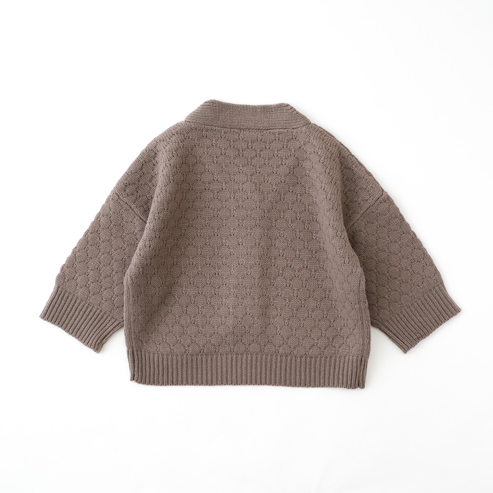 - ぽこぽこ編み地が可愛いニットカーディガン。ゆるっとしたシルエットと優しいカラーリングがポイントで、前後差のあるデザインがこなれ感を演出します。