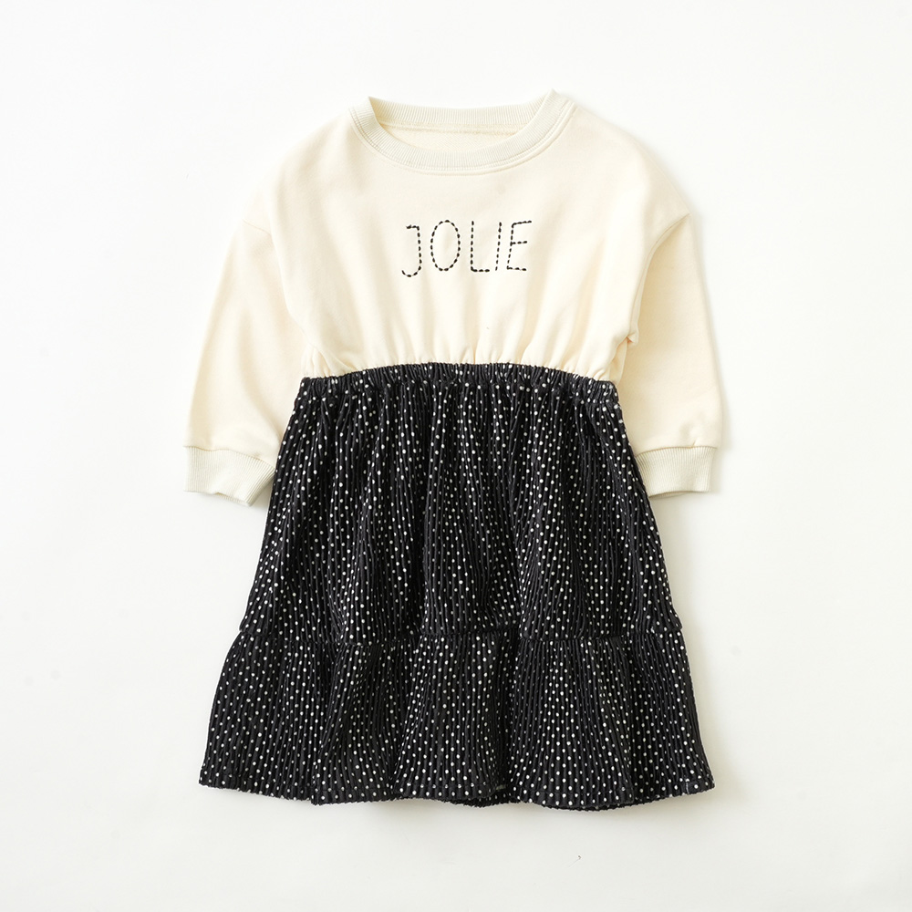 - プリーツ加工を施したベロアドット生地のスカートに、刺繍ロゴがポイント★