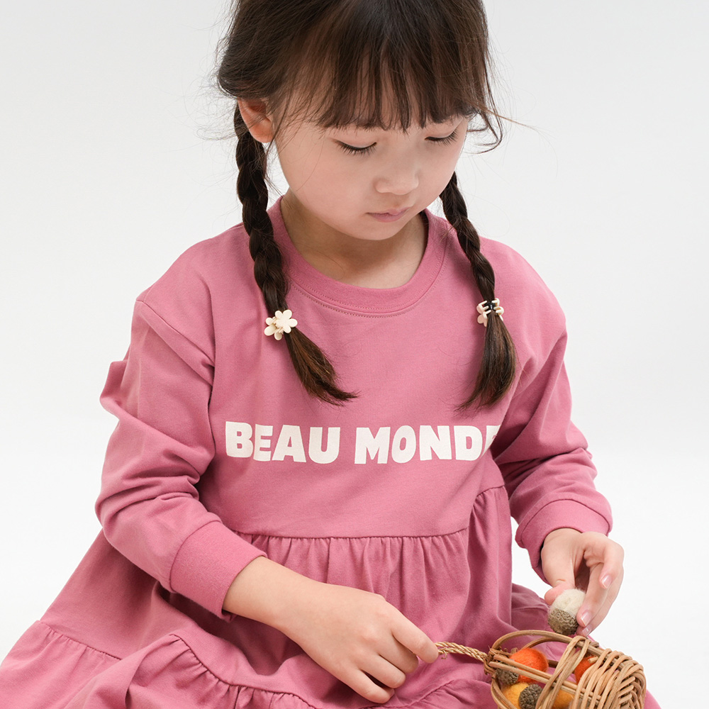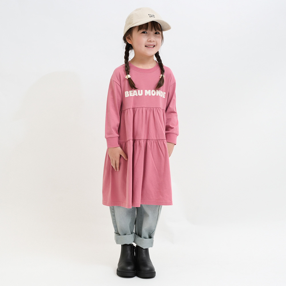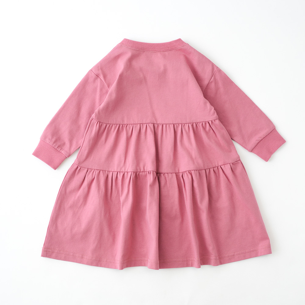 袖口リブ仕様で手洗いも簡単。ベストやボトムとのレイヤードも楽しめ、1枚でも華やかに決まるおすすめのワンピースです。