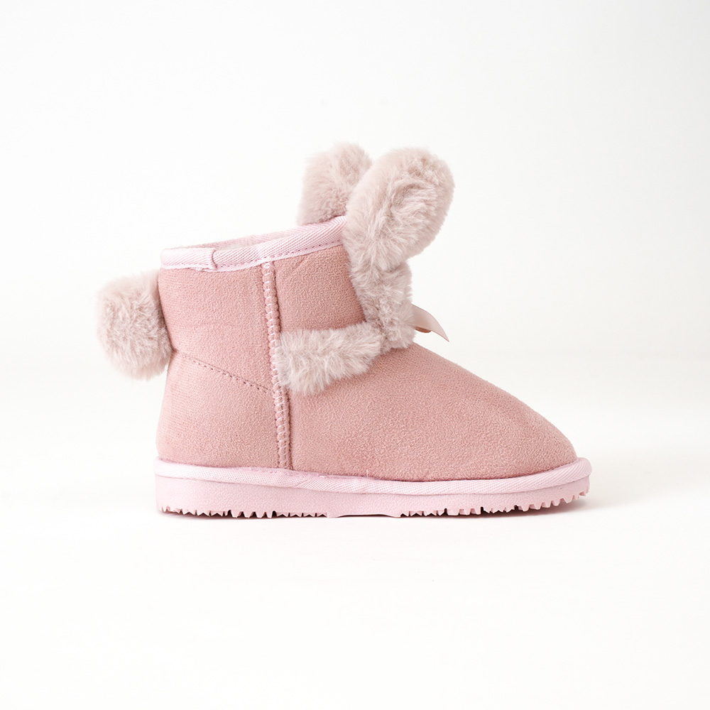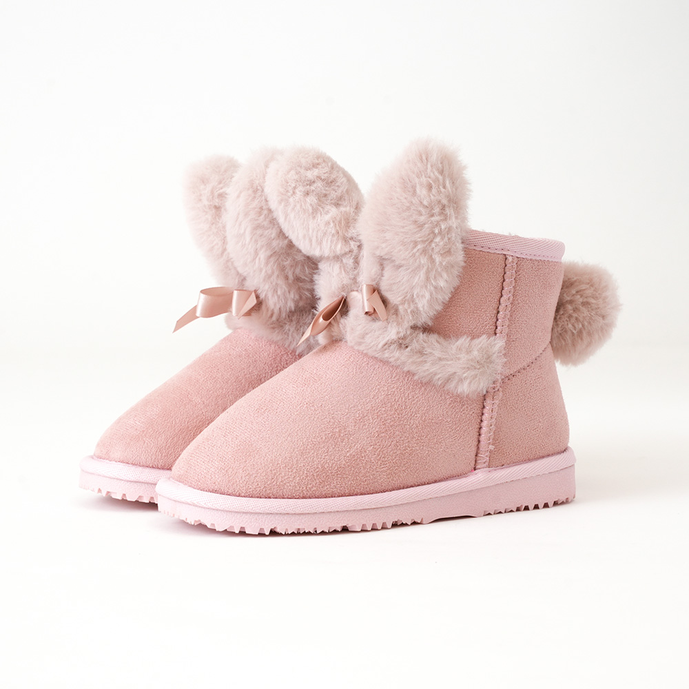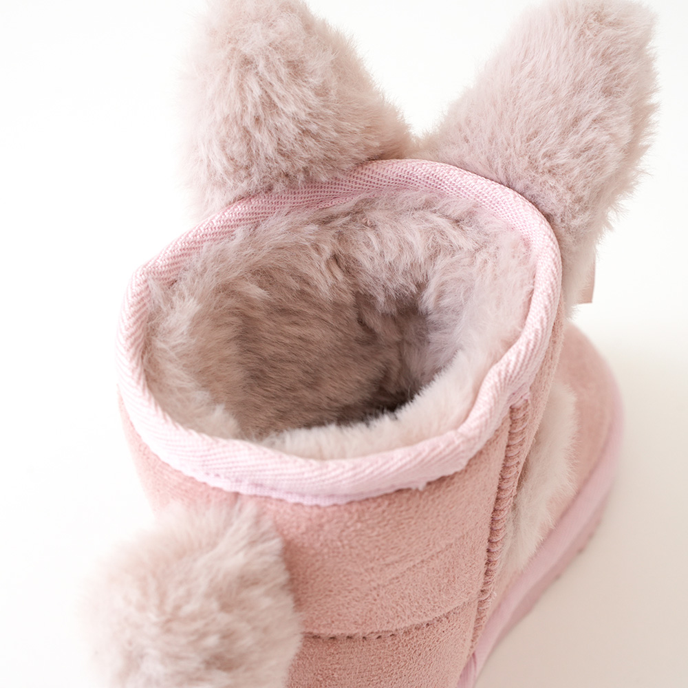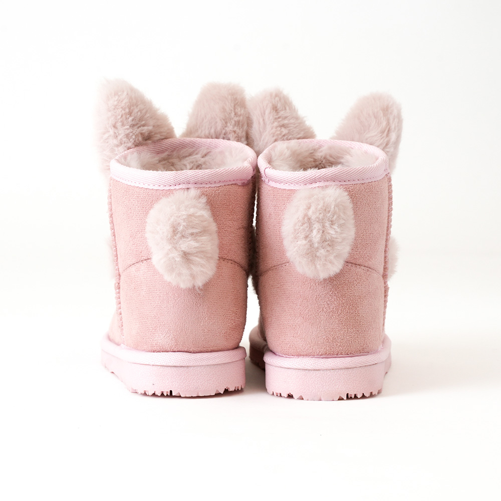 ふわふわウサギのお耳としっぽがついたキュートなムートンブーツ。