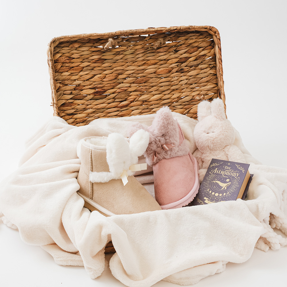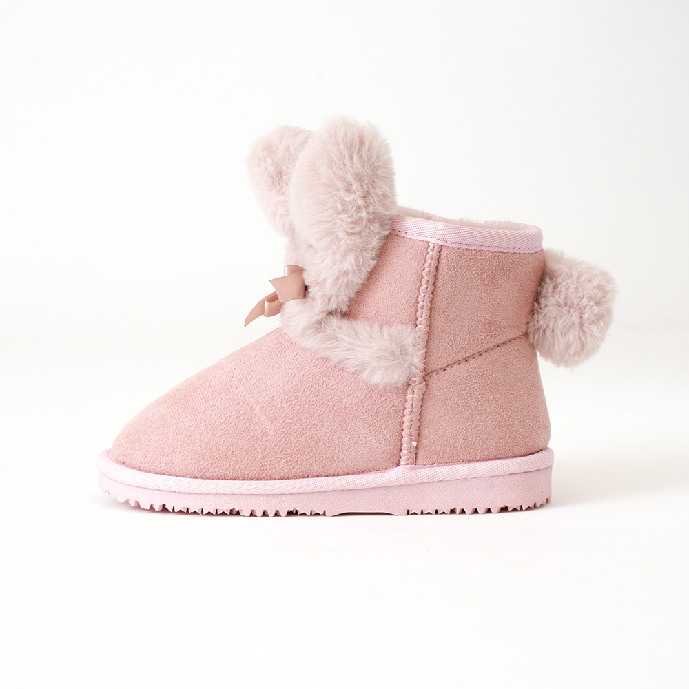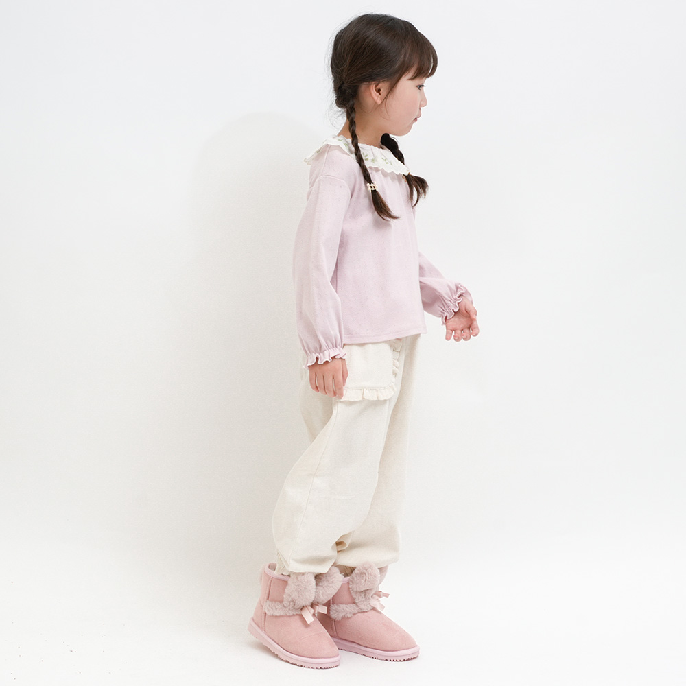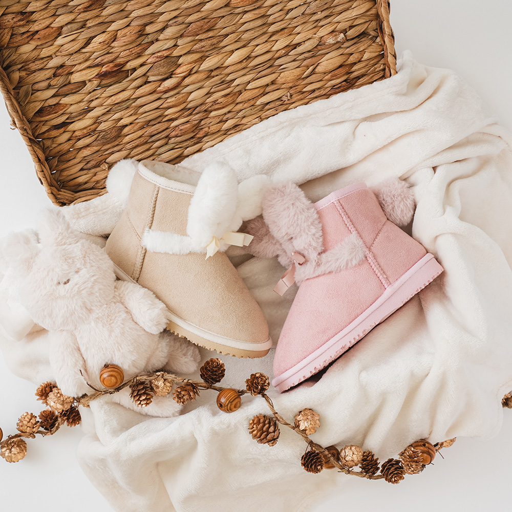 ふわふわウサギのお耳としっぽがついたキュートなムートンブーツ。