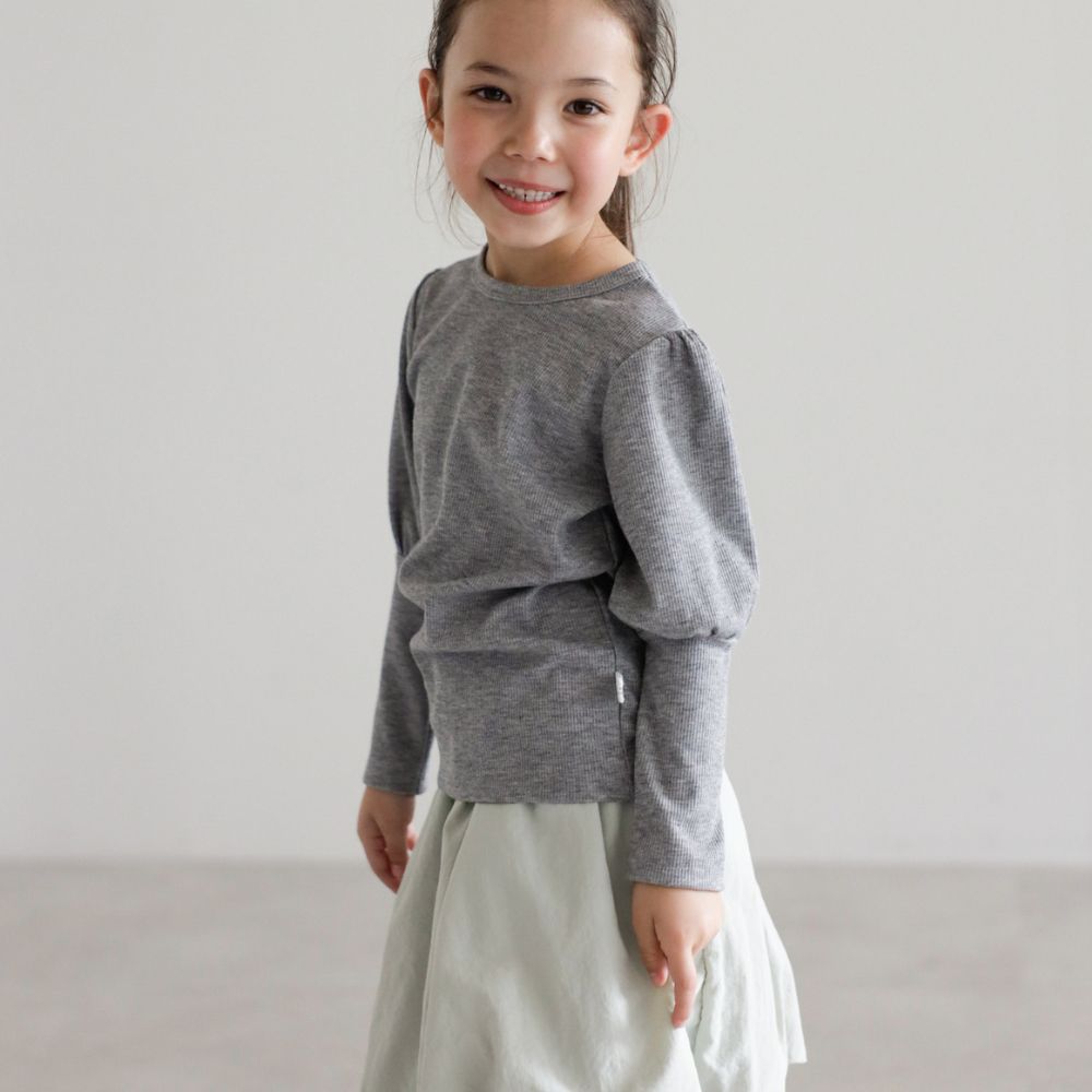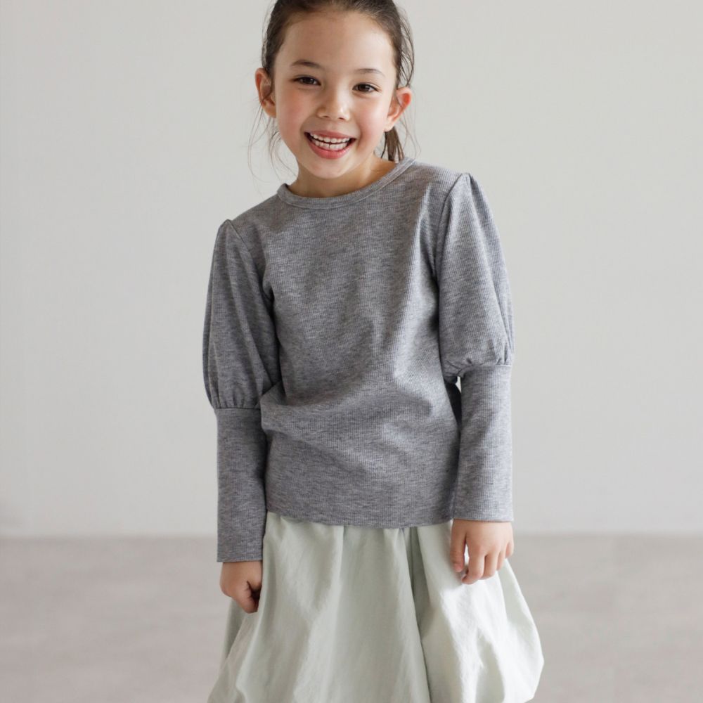 柔らかなリブ素材をベースに仕上げ、伸縮性があり動きやすいトップス。